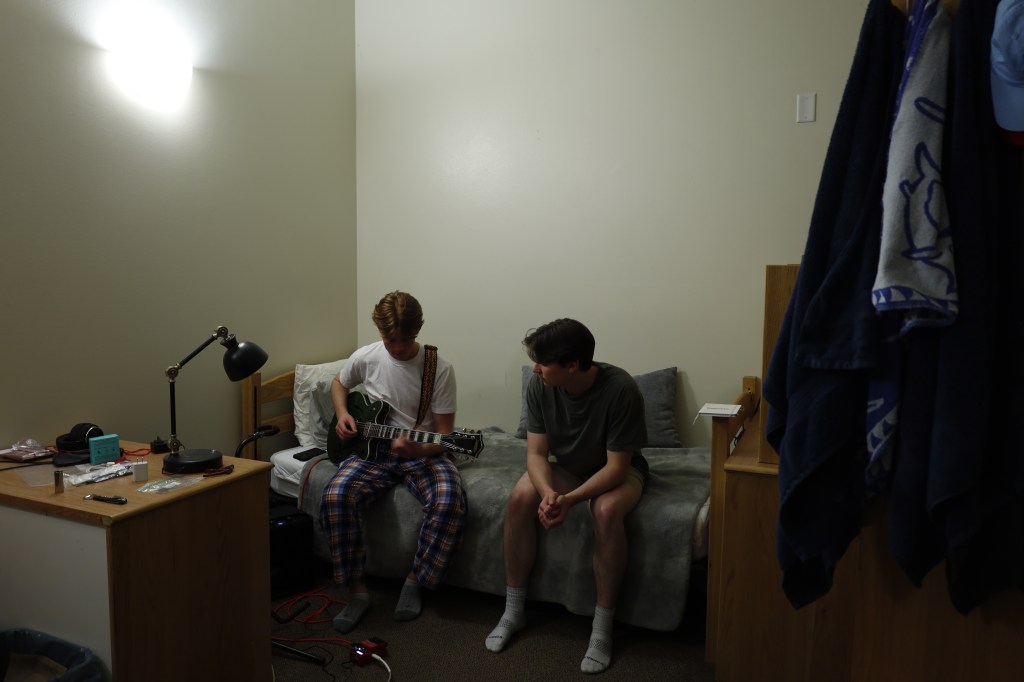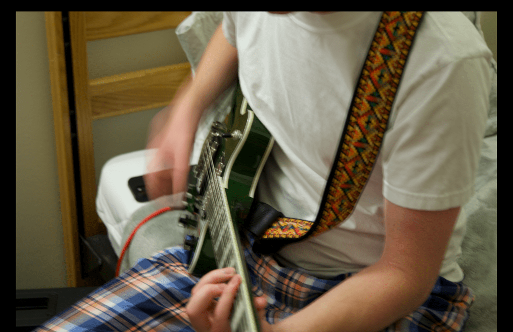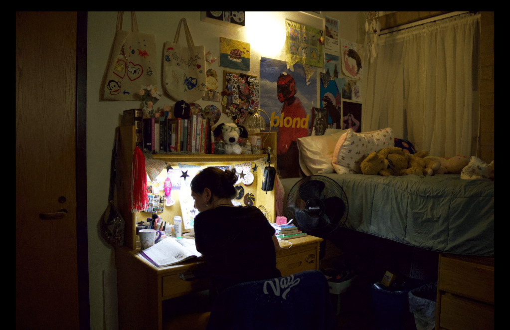 For my photo gallery I focus on housing and dorm life by capturing residence halls, shared living spaces, and individual rooms to show how students live daily. I highlighted details like decorations, organization, and interactions to reveal relationships and personalities. My favorite photos include my two friends playing guitar, which captures a candid moment, my roommate relaxing on her bed, where lighting and decorations show calmness and individuality, and a calendar image that adds a fun and balance to college life, showing that the student experience go beyond just academics and work.